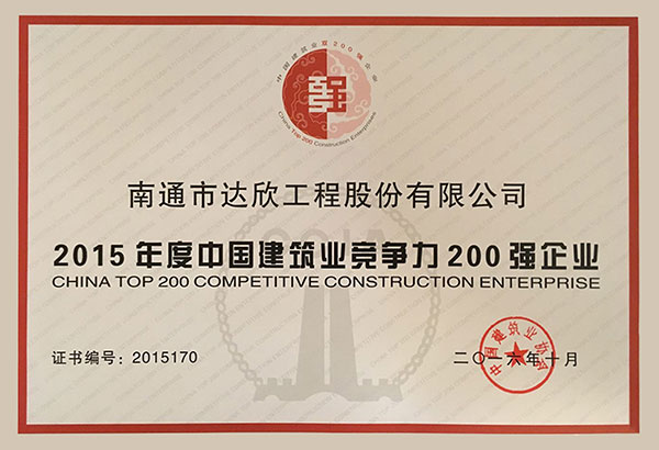 新的《中國建筑業(yè)雙200強(qiáng)企業(yè)評價(jià)辦法》主要從經(jīng)營規(guī)模、資產(chǎn)規(guī)模、盈利能力、上繳稅金、科技、質(zhì)量、精神文明等五個方面進(jìn)行綜合評價(jià),經(jīng)企業(yè)自愿申報(bào)、各地區(qū)和有關(guān)行業(yè)協(xié)會推薦、專家評審。這是公司連續(xù)5年榜上有名,也是公司首度由成長性百強(qiáng)跨入中國建筑業(yè)競爭力200強(qiáng)企業(yè)序列,標(biāo)志著公司綜合競爭力水平再上新臺階。