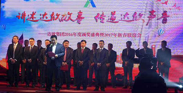 集團黨委書記劉厚純宣讀了表彰決定, 縣領(lǐng)導(dǎo)為獲得集團2016年度的創(chuàng)優(yōu)標(biāo)桿、實力標(biāo)桿、項目標(biāo)桿與管理標(biāo)桿、達欣新銳等先進個人代表進行了頒獎。