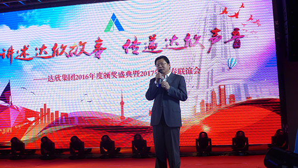 集團高管們在澎湃的“達欣之歌”聲中激情登場,公司董事長馬和軍進行了致辭答謝。他回顧了公司 一年來所取得的輝煌成績,感謝社會各界及公司全體同志們的努力,并對公司的未來發(fā)展之路描繪了藍圖;接著,縣委書記陸衛(wèi)東發(fā)表重要講話, 他指出,建筑業(yè)是我縣的傳統(tǒng)產(chǎn)業(yè),也是一個富民強勢產(chǎn)業(yè),還是我縣財政收入的重要來源之一,作為縣內(nèi)的骨干企業(yè),達欣公司步入了公司歷史以來發(fā)展最快、榮譽最高、分配最多、貢獻最大的時期,他希望公司要加快發(fā)展,高起點定位,突出重點,好中求快,實現(xiàn)達欣新飛躍。