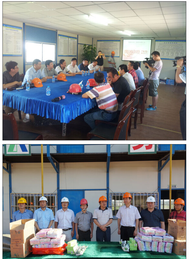 焦縣長代表海安縣委、縣政府對遠離家鄉(xiāng)為上海這座大城市建設(shè)作出貢獻的建設(shè)者們表示衷心感謝,感謝建設(shè)者們在這炎熱的季節(jié)堅守著崗位。他要求建筑施工企業(yè)要本著“以人為本”的宗旨,合理安排高溫時段的作息時間,切實抓好工人的飲食衛(wèi)生及各種后勤保障工作;要把安全生產(chǎn)放在首位,采取各種有效的措施,做好施工過程中安全防范和突發(fā)事件的應急應對工作,確保職工生命安全,確保生產(chǎn)安全。
