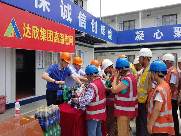 在項目部,集團公司領(lǐng)導(dǎo)將人丹、花露水、雪碧等防暑降溫用品發(fā)放給每一位職工,同時叮囑大家夏季高溫作業(yè)時,注意防暑降溫。另外,員工養(yǎng)成良好的生活衛(wèi)生習慣,不疲勞上崗、不帶不良情緒上崗,以良好的精神狀態(tài)上好班。