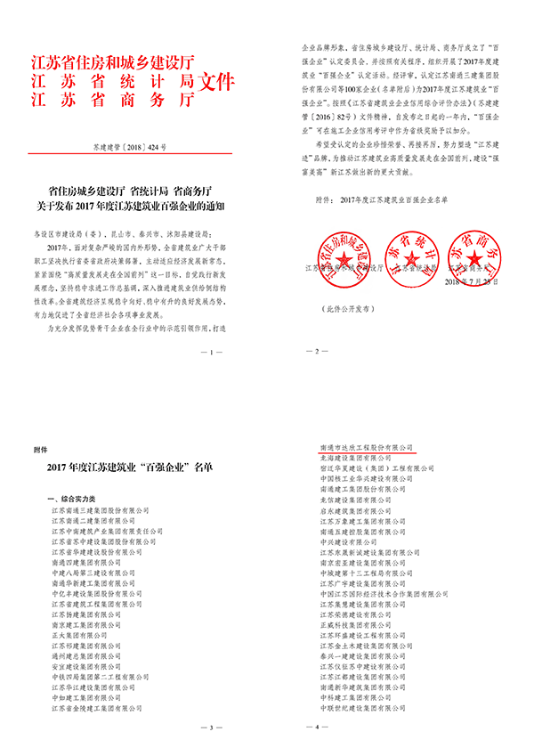 江蘇建筑業(yè)“百強企業(yè)”是由省建設(shè)廳、省統(tǒng)計局、省商務(wù)廳成立的“百強企業(yè)”認(rèn)定委員會評議認(rèn)定,從企業(yè)營業(yè)額等經(jīng)濟類指標(biāo)、質(zhì)量安全、技術(shù)創(chuàng)新指標(biāo)等方面進行綜合評定,旨在充分發(fā)揮優(yōu)勢企業(yè)在全行業(yè)中的引領(lǐng)和示范作用,打造建筑企業(yè)品牌,提升核心競爭力,是權(quán)威性的政府評選。同時按照《江蘇省建筑業(yè)企業(yè)信用綜合評價辦法》(蘇建建管〔2016〕82號)文件精神,自發(fā)布之日起的一年內(nèi),“百強企業(yè)”可在施工企業(yè)信用考評中作為省級獎勵予以加分。