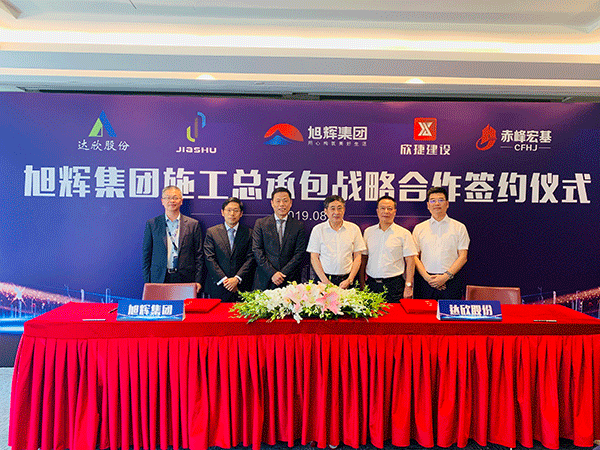 在旭輝集團(tuán)執(zhí)行總裁陳東彪先生與達(dá)欣集團(tuán)董事長(zhǎng)馬和軍先生的共同見證下,旭輝集團(tuán)運(yùn)營中心總經(jīng)理劉峰與達(dá)欣集團(tuán)黨委書記劉厚純代表雙方簽約施工總承包戰(zhàn)略合作協(xié)議。