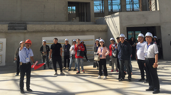 觀摩活動開展前,工程公司技術負責人丁園園就項目綠色施工、質(zhì)量安全標準化施工、BIM技術運用等方面作了經(jīng)驗介紹。觀摩中,項目技術負責人洪陽就項目BIM技術在場地布置模擬、樣板策劃、碰撞檢查與優(yōu)化、可視化交底、凈高分析與控制、日常安全質(zhì)量管理等方面做了詳細講解。