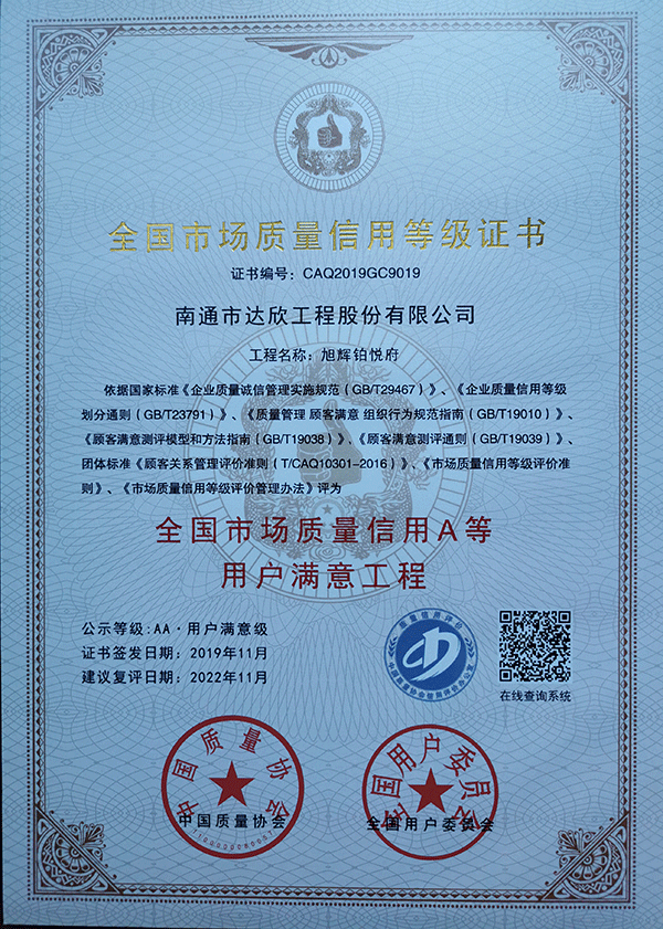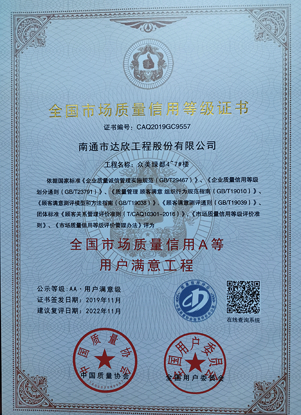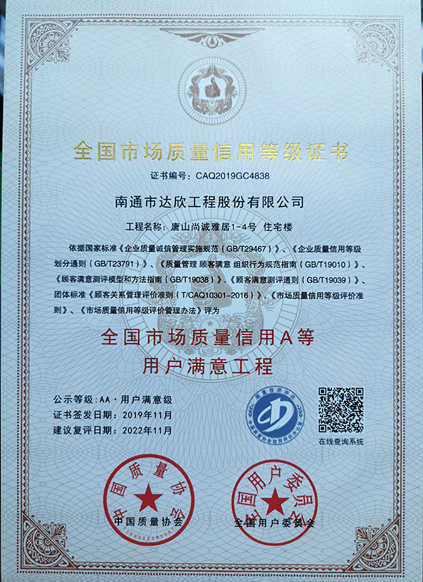 一舉獲得三項殊榮不僅僅是向外界展示了達欣集團在工程建設上的技術實力和精品工程信譽度,更是達欣集團在工程建設中以“質(zhì)量贏得市場,使企業(yè)建立較強的市場競爭力”。
