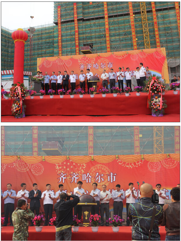 8月11日上午,經(jīng)過130天的緊張施工,備受齊市人民關(guān)注的市公安局指揮中心主體工程順利封頂。出席慶典儀式的有齊齊哈爾市人民政府副市長、市公安局黨委書記、局長吳剛同志、齊齊哈爾市新城建設(shè)指揮部副總指揮、市人保局局長李會明同志、齊齊哈爾市新城建設(shè)指揮部副總指揮、市住建局常務(wù)副局長趙坤海同志、市公安局黨委領(lǐng)導(dǎo)班子全體成員、市建設(shè)行政主管部門相關(guān)領(lǐng)導(dǎo)以及齊齊哈爾市中匯城控股有限公司行政副總裁朱軍同志、市電視臺相關(guān)同志及各單位代表共計300多人參加了慶典活動。
