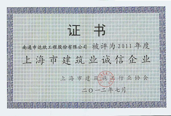 根據《上海市建筑施工企業(yè)誠信建設行業(yè)評價試行辦法》和《上海市建筑施工企業(yè)綜合實力排名辦法》、2011年度企業(yè)誠信建設相關考核、《指標體系及評分標準》等內容,第一工程公司在經過申報、初審、征詢主管部門意見、上網公示四個環(huán)節(jié)后,最終由上海市建筑施工企業(yè)誠信建設行業(yè)評價委員會審定通過,榮獲2011年度“上海市建筑業(yè)誠信企業(yè)”稱號。這是達欣股份自易名以來連續(xù)五年獲此殊榮。此外公司還被評為2011年度“上海市建筑施工企業(yè)綜合實力進步獎”稱號,承建的萬寶國際廣場項目榮獲2011年度上海市“白玉蘭”優(yōu)質工程。