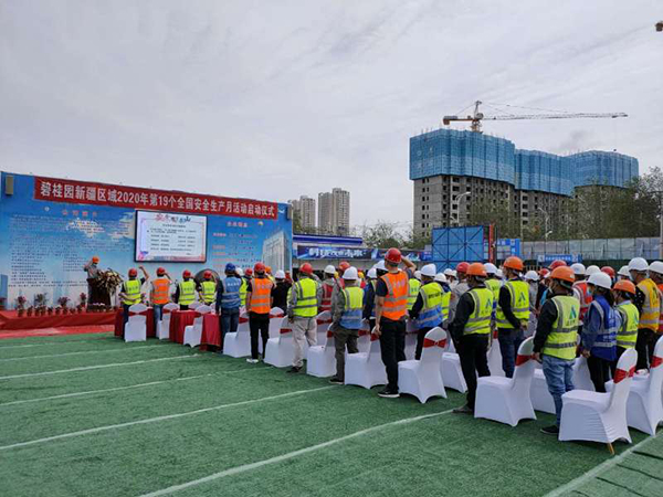為貫徹落實(shí)國務(wù)院安委辦關(guān)于開展全國“安全生產(chǎn)月”和“安全生產(chǎn)萬里行”活動(dòng)要求,6月6日,碧桂園新疆區(qū)域在第十一工程公司碧桂園黃金時(shí)代二期項(xiàng)目部舉行2020年“安全生產(chǎn)月”活動(dòng)啟動(dòng)儀式。碧桂園新疆區(qū)域總裁宋朕、碧桂園新疆區(qū)域大運(yùn)營組長(zhǎng)張揚(yáng)、碧桂園黃金時(shí)代項(xiàng)目總經(jīng)理寧波以及碧桂園新疆區(qū)域9個(gè)項(xiàng)目11個(gè)標(biāo)段碧桂園項(xiàng)目總經(jīng)理、監(jiān)理單位總監(jiān)、總包單位負(fù)責(zé)人近百人參加此次啟動(dòng)儀式。