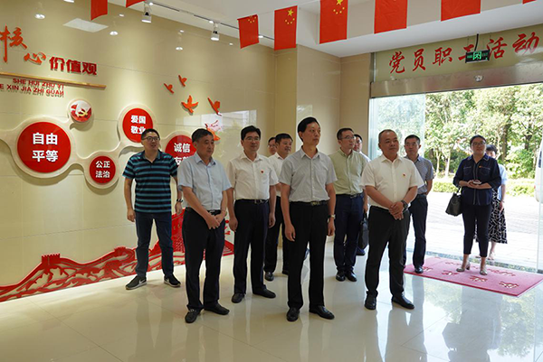 7月24日,省委組織部組織三處(省委“兩新”工委辦公室)三級調研員張繼東、一級主任科員劉明蒞臨集團調研黨建工作。南通市市委黨建辦副主任俞雷、兩新工委辦公室主任周鋒杰,海安市市委組織部常務副部長陳錦璜,海安市市委組織部副部長、“兩新”工委書記、機關工委書記劉建軍,胡集街道黨工委書記單蓓,集團董事長馬和軍等陪同。