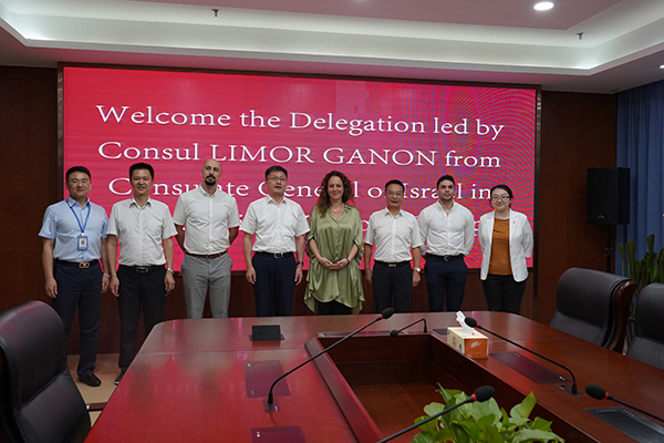 8月4日下午,以色列駐上??傤I(lǐng)事館領(lǐng)事葛麗茉LIMOR GANON、總領(lǐng)事高級(jí)顧問(wèn)尤西YOSSI BEN SHITRIT、領(lǐng)事助理JOSEPH ALFASA 、喬瑩青、陸彥璇一行蒞臨集團(tuán)進(jìn)行商務(wù)訪問(wèn)。海安市副市長(zhǎng)張?jiān)?,海安市商?wù)局副局長(zhǎng)史遐兵,集團(tuán)黨委書記、副董事長(zhǎng)劉厚純,常務(wù)副總經(jīng)理王邦國(guó)陪同接待。