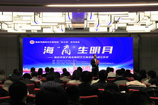 10月29日,海安市駐滬新時代文明實踐站成立儀式在上海舉行。江蘇省住建廳駐上海辦事處主任、江蘇省人民政府駐上海辦事處建管處處長趙永強,南通市文明辦副主任吳信林;海安市委副書記、黨校校長張浩,海安市委常委、宣傳部長王榮貴,海安市人民政府副市長戴曉晨,以及上海海安商會全體會員,海安駐滬流動黨員聯(lián)合黨委全體班子成員,海安駐滬建筑企業(yè)負責人,各區(qū)鎮(zhèn)街道政工書記、宣傳委員、駐滬招商人員等200多人出席活動現(xiàn)場。