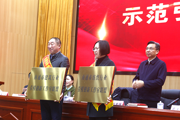 儀式上,對在開展勞模創(chuàng)新工作室創(chuàng)建和勞模黨支部“薪火工程”系列行動中,大力弘揚(yáng)勞模精神、勞動精神和工匠精神,充分發(fā)揮勞模在推動高質(zhì)量、建設(shè)“強(qiáng)富美高”新南通中起到示范引領(lǐng)作用的先進(jìn)典型進(jìn)行了表揚(yáng),集團(tuán)創(chuàng)建的“馬和軍勞模創(chuàng)新工作室黨支部”被命名“南通市十佳勞模創(chuàng)新工作室黨支部”榮譽(yù)稱號,同時(shí),集團(tuán)副總經(jīng)理、工會主席溫鶴華還接收了“南通市建筑行業(yè)勞模創(chuàng)新工作室聯(lián)盟”的牌匾。