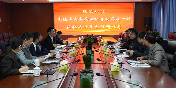2月24日上午,南通市商務(wù)局黨組成員、副局長(zhǎng)黃柳春率隊(duì)蒞臨達(dá)欣集團(tuán)調(diào)研,海安市商務(wù)局副書(shū)記、副局長(zhǎng)史霞兵,集團(tuán)董事長(zhǎng)馬和軍、黨委書(shū)記劉厚純、常務(wù)副總經(jīng)理王邦國(guó)等陪同。