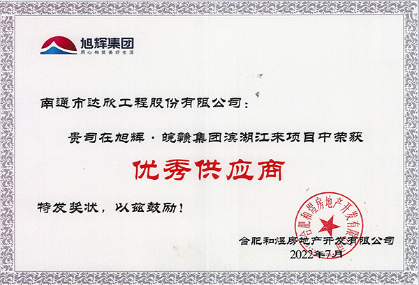近日,旭輝·皖贛集團(tuán)對(duì)2022年度優(yōu)質(zhì)供應(yīng)商進(jìn)行表彰,集團(tuán)第一工程公司在旭輝·皖贛集團(tuán)濱湖江來項(xiàng)目中榮獲優(yōu)秀供應(yīng)商稱號(hào)。