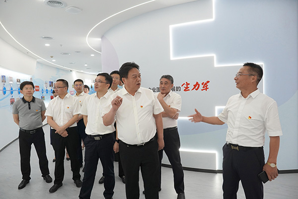 于立忠一行參觀了“征途如虹”企業(yè)印記,“初心如炬”黨建云庫(kù),“教誨如風(fēng)”達(dá)欣講堂,“使命如山”先鋒服務(wù)站,“追夢(mèng)如潮”職工書屋,“群團(tuán)如影”風(fēng)采展示等七個(gè)版塊和書記工作室。于立忠指出,達(dá)欣黨建主題館,全方位展現(xiàn)了企業(yè)黨建成果和發(fā)展成就,形式生動(dòng),內(nèi)涵豐富、詳實(shí)。于立忠強(qiáng)調(diào),抓好非公企業(yè)黨建始終是促進(jìn)非公經(jīng)濟(jì)發(fā)展健康發(fā)展的核心舉措,“高質(zhì)量黨建引領(lǐng)企業(yè)高質(zhì)量發(fā)展”在達(dá)欣得到生動(dòng)的實(shí)踐。于立忠希望,達(dá)欣集團(tuán)要不斷完善優(yōu)化主題館內(nèi)容,切實(shí)將黨建主題館打造為黨員、團(tuán)員青年、職工群眾學(xué)習(xí)黨的創(chuàng)新理論、傳承勞模工匠精神的新平臺(tái),并作為記錄達(dá)欣黨建工作與企業(yè)同步發(fā)展的重要載體。要繼續(xù)堅(jiān)持“圍繞發(fā)展抓黨建,抓好黨建促發(fā)展”的理念,不斷豐富黨建品牌內(nèi)涵,為海安非公企業(yè)黨建樹立榜樣典型,為海安發(fā)展作出新的更大貢獻(xiàn)。