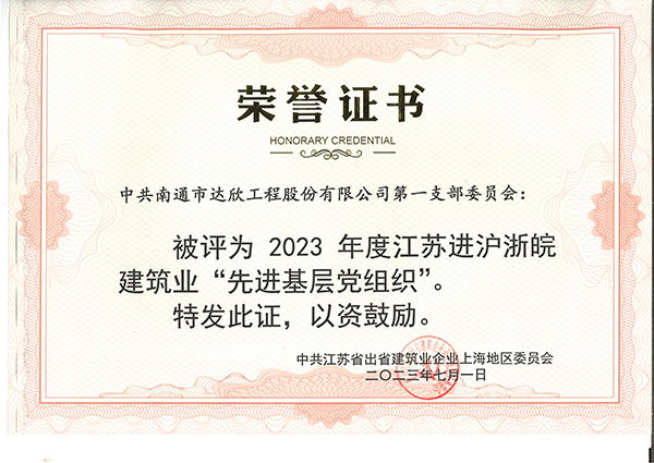 近日,從江蘇省住房和城鄉(xiāng)建設(shè)廳駐上海辦事處傳來喜訊,集團第一黨支部委員會被評為“2023年度江蘇進滬浙皖建筑業(yè)先進基層黨組織”榮譽稱號,倪志榮同志獲“全省住房和城鄉(xiāng)建設(shè)行業(yè)優(yōu)秀共產(chǎn)黨員”、馬寧偉同志獲“江蘇進滬浙皖建筑業(yè)優(yōu)秀共產(chǎn)黨員”、陳元國同志獲“江蘇進滬浙皖建筑業(yè)優(yōu)秀黨務(wù)工作者”。