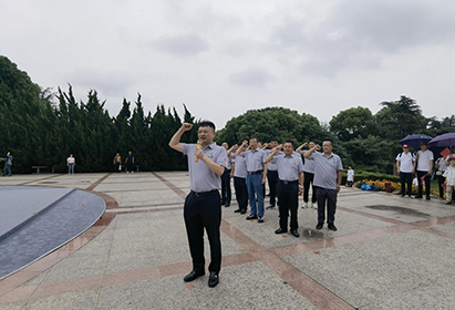 在抗日英雄群雕廣場,全體黨員懷著對革命烈士崇高的敬意,向革命英雄敬獻(xiàn)花籃,鞠躬悼念中銘記歷史。支部書記倪志榮帶領(lǐng)全體黨員重溫入黨誓詞,面對鮮紅的黨旗和莊嚴(yán)的誓詞,共同高舉右拳,莊嚴(yán)宣誓。