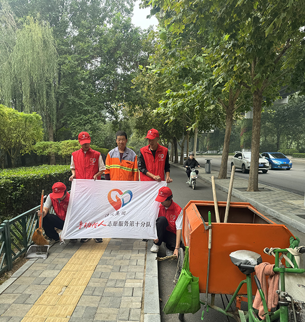 9月26日下午,達(dá)欣集團(tuán)•魯班傳人志愿服務(wù)隊第十分隊在邵鵬偉的帶領(lǐng)下走到街區(qū),與環(huán)衛(wèi)工人一起清掃街道。