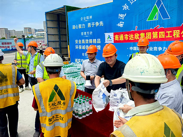 正值盛夏,烈日炎炎,施工現(xiàn)場的工友們不懼高溫,堅守崗位,全力推進(jìn)項目建設(shè)進(jìn)度。工程公司總經(jīng)理傅海榮詳細(xì)詢問工友們的工作和生活情況,對大家在高溫下辛勤付出表示衷心感謝。隨后,傅海榮親自將精心準(zhǔn)備的防暑降溫禮品分發(fā)到每一位工友手中,為工友們在炎炎夏日送去一份貼心的關(guān)懷。