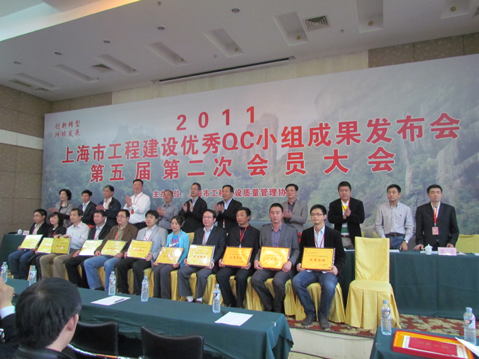 4月17日上海市工程建設(shè)質(zhì)量管理協(xié)會召開2011年建設(shè)工程優(yōu)秀QC小組活動成果發(fā)布會暨第五屆第二次會員大會。第一工程公司選送的 “攻克3m厚大體積砼底板裂縫”、“提高施工現(xiàn)場安全達標(biāo)優(yōu)良率”、“推行‘四節(jié)一環(huán)?!行Ы档凸こ坛杀尽?、“提高建筑幕墻工程的施工質(zhì)量”、“有效控制填充墻內(nèi)混凝土構(gòu)造柱裂縫”、“有效控制斜屋面混凝土施工質(zhì)量”、“提高YTONG砂加氣砼砌塊砌筑合格率”、“有效提高模板工程施工質(zhì)量”、“降低明珠城三期工程鋼筋損耗”等九項QC成果均參加本次活動的發(fā)布與交流。這次江蘇省在滬企業(yè)參加QC成果發(fā)布、交流共83篇,我公司就占據(jù)其中的14%,得到了駐滬辦領(lǐng)導(dǎo)的充分肯定。工程公司也被上海市工程建設(shè)質(zhì)量管理協(xié)會評為2011年上海市建設(shè)質(zhì)量管理小組活動優(yōu)秀企業(yè)。