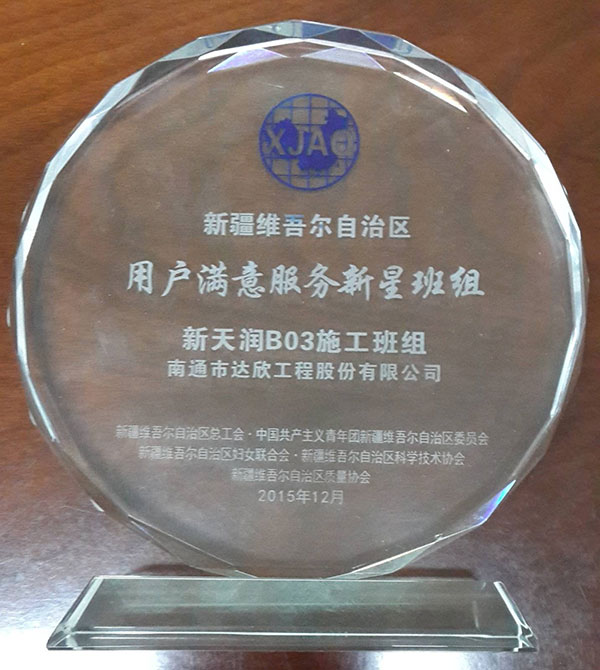 第十一工程公司新疆新天潤B03項目部,憑借可靠的產(chǎn)品質(zhì)量、較高的社會美譽度贏得了用戶和業(yè)主的滿意,通過了2015年度新疆維吾爾自治區(qū)總工會、中國共青團新疆維吾爾自治區(qū)委員會、新疆維吾爾自治區(qū)婦女聯(lián)合會、新疆維吾爾自治區(qū)科學(xué)技術(shù)協(xié)會、新疆維吾爾自治區(qū)質(zhì)量協(xié)會共同組織的專家組現(xiàn)場審核、答辯,成功獲得了新疆維吾爾自治區(qū)全區(qū)、全行業(yè)競爭中建筑業(yè)唯一的“用戶滿意服務(wù)之星新星班組”的光榮稱號(全區(qū)共獲得12個新星班組),充分證明了我公司的綜合實力和業(yè)界廣大客戶對我公司產(chǎn)品的認可。